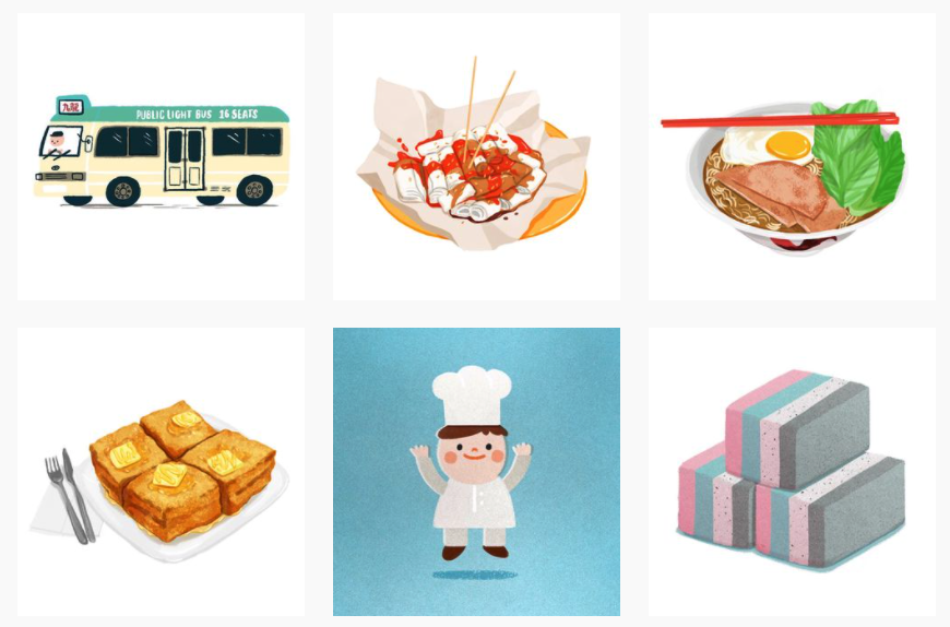 I love drawing food and people most. It’s been a bit tricky finding time to do creative work since having kids, but when I can, I pull inspiration from real life. I draw my favourite foods, Chinese food, foods I miss from Hong Kong, places we’ve visited, etc.